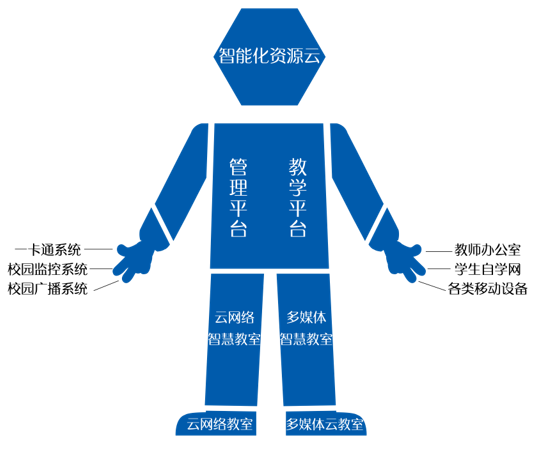 智慧校園具有人工智能的特點,數(shù)字化校園和智慧教室是智慧校園的“四肢”;云平臺是智慧校園的“身軀”;智能化資源云則是智慧校園的“大腦”。