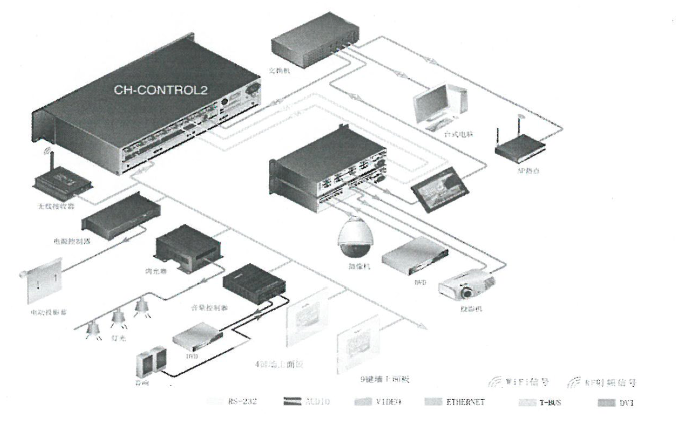 通過集中控制系統(tǒng)來控制投影機(jī)、RGB矩陣、音視頻矩陣、音響系統(tǒng)、視頻切換控制下等所有設(shè)備的電源開關(guān),等離子等VGA信號(hào)切換以及DVD、攝像機(jī)等各視頻信號(hào)切換??赏ㄟ^單鍵實(shí)現(xiàn)多種功能同時(shí)動(dòng)作,可以同時(shí)輸入多路信號(hào)及輸出多路不同信號(hào),滿足視頻會(huì)議及匯報(bào)工作需要。
