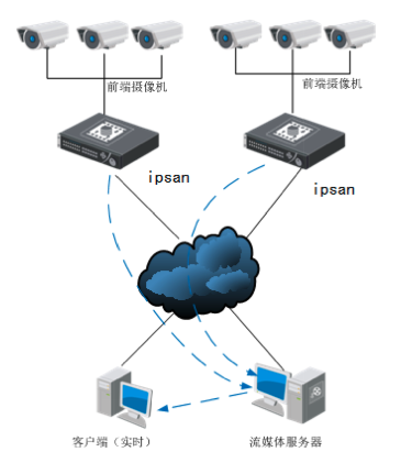 當多個客戶端需要同時查看某監(jiān)控點的相同畫面時,勢必會造成在一條通訊網(wǎng)絡(luò)線路上的數(shù)據(jù)擁堵,嚴重浪費網(wǎng)絡(luò)資源。監(jiān)控平臺軟件可以在有限的帶寬下,通過高效的流媒體轉(zhuǎn)發(fā)和流媒體級聯(lián)功能,保證音視頻流穩(wěn)定有效的傳輸,以及在不 同網(wǎng)段之間轉(zhuǎn)發(fā)媒體數(shù)據(jù),實現(xiàn)被轉(zhuǎn)發(fā)媒體位置的透明性。當有多個客戶端需要同時訪問同一遠程畫面時,在轉(zhuǎn)發(fā)服務(wù)與前端視頻通道之間只占用一個通道帶寬的網(wǎng)絡(luò)資源,再由轉(zhuǎn)發(fā)服務(wù)器將數(shù)據(jù)分發(fā)給多個客戶端,解決了帶寬、內(nèi)外網(wǎng)和多用戶訪問的沖突,有效地利用 網(wǎng)絡(luò)帶寬。流媒體服務(wù)器支持視音頻流的轉(zhuǎn)發(fā),當有多個局域網(wǎng)客戶端需要同時訪問同一遠程畫面時,可以通過流媒體服務(wù)器進行轉(zhuǎn)發(fā),在轉(zhuǎn)發(fā)服務(wù)與前端視頻通道之間只占用一個通道帶寬的網(wǎng)絡(luò)資源,再由轉(zhuǎn)發(fā)服務(wù)器將數(shù)據(jù)分發(fā)給多個客戶端。