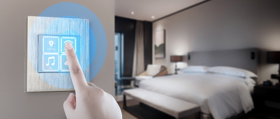 主臥:智能情景面板+背景音樂+起夜燈+環(huán)境監(jiān)測+緊急按鈕