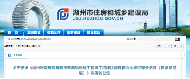 近日,湖州市住建局發(fā)布《關于征求<湖州市房屋建筑和市政基礎設施工程施工招標投標評標辦法修訂部分條款(征求意見稿)>意見的公告》,明確:
