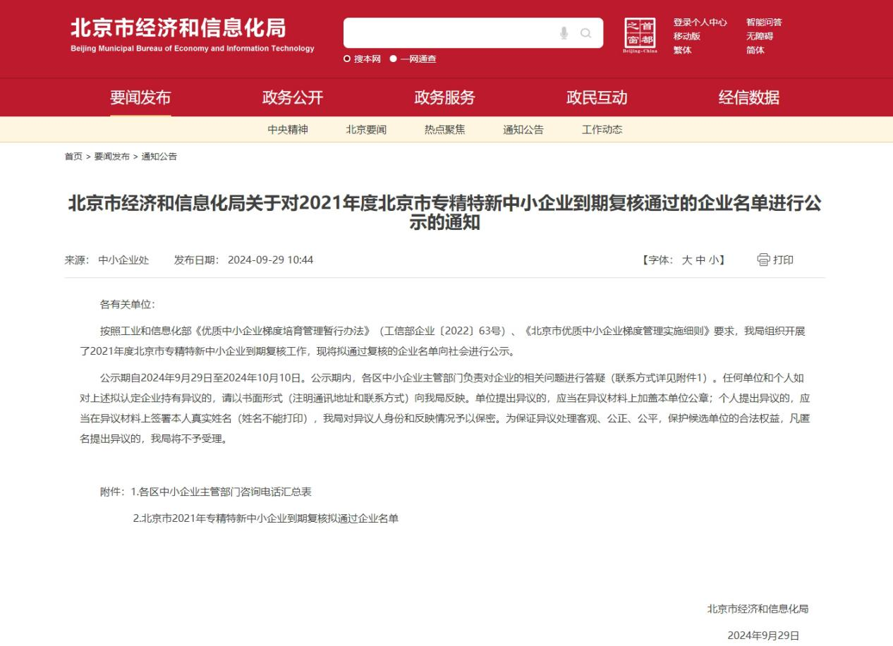 近日,北京市經(jīng)濟(jì)和信息化局公示了專精特新復(fù)核通過企業(yè)名單,北京欣智恒科技股份有限公司(以下簡稱“欣智恒科技”)順利通過復(fù)核。
