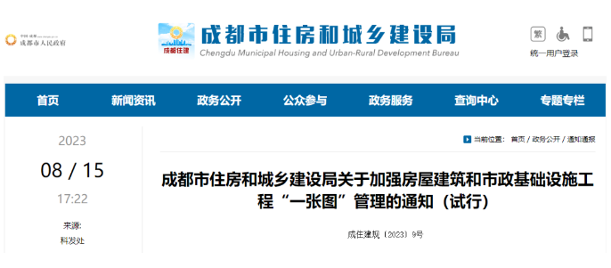 近日,成都市住建局發(fā)布《關于加強房屋建筑和市政基礎設施工程“一張圖”管理的通知(試行)》,該通知自2023年9月1日起施行。