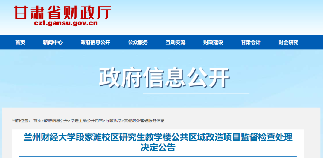 我機(jī)關(guān)依法對(duì)2022年6月22日收到的對(duì)“蘭州財(cái)經(jīng)大學(xué)段家灘校區(qū)研究生教學(xué)樓公共區(qū)域改造項(xiàng)目”采購(gòu)文件的舉報(bào)進(jìn)行了監(jiān)督檢查。